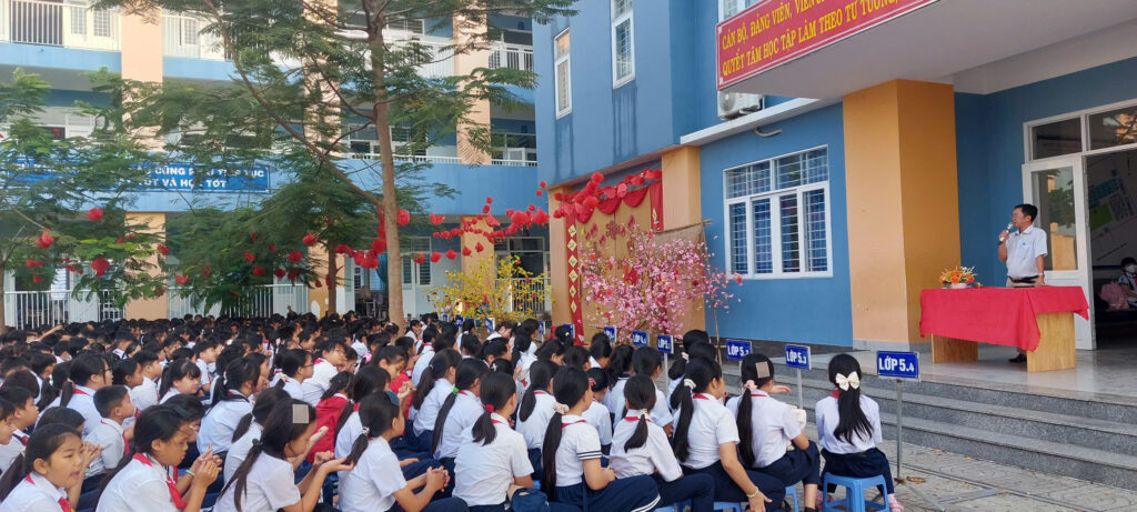 Buổi sinh hoạt dưới cờ kết thúc trong tiếng cười giòn giã và bài hát “Sắp đến Tết rồi” vang vọng khắp sân trường.