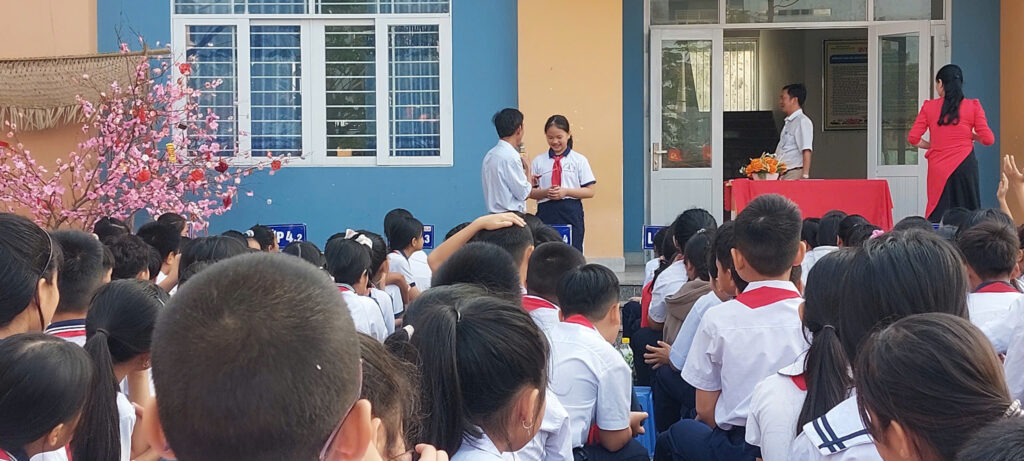 Để khích lệ tinh thần, Ban Giám hiệu và Liên đội đã dành tặng những phong bao lì xì đỏ thắm cho các bạn tham gia biểu diễn. Đây không chỉ là món quà vật chất mà còn là lời động viên các em hãy luôn tự tin tỏa sáng với đam mê của mình.