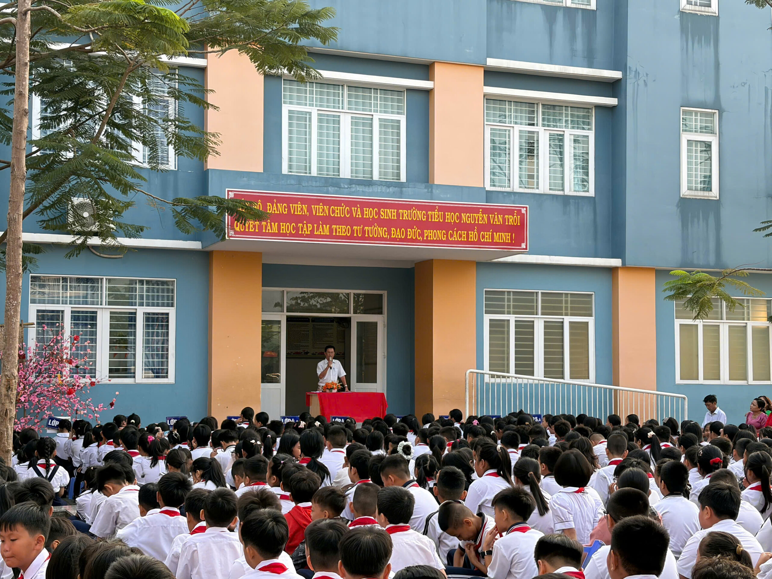 Sáng nay, ngày 23/2/2026, trong không khí ấm áp của những ngày đầu xuân, thầy và trò trường Tiểu học Nguyễn Văn Trỗi đã cùng nhau hội ngộ trong tiết sinh hoạt dưới cờ đầu tiên sau kỳ nghỉ Tết Nguyên Đán Bính Ngọ. Những nụ cười rạng rỡ, những bộ đồng phục chỉnh tề hòa cùng sắc xuân vẫn còn đọng lại đã tạo nên một khởi đầu đầy năng lượng cho học kỳ mới.