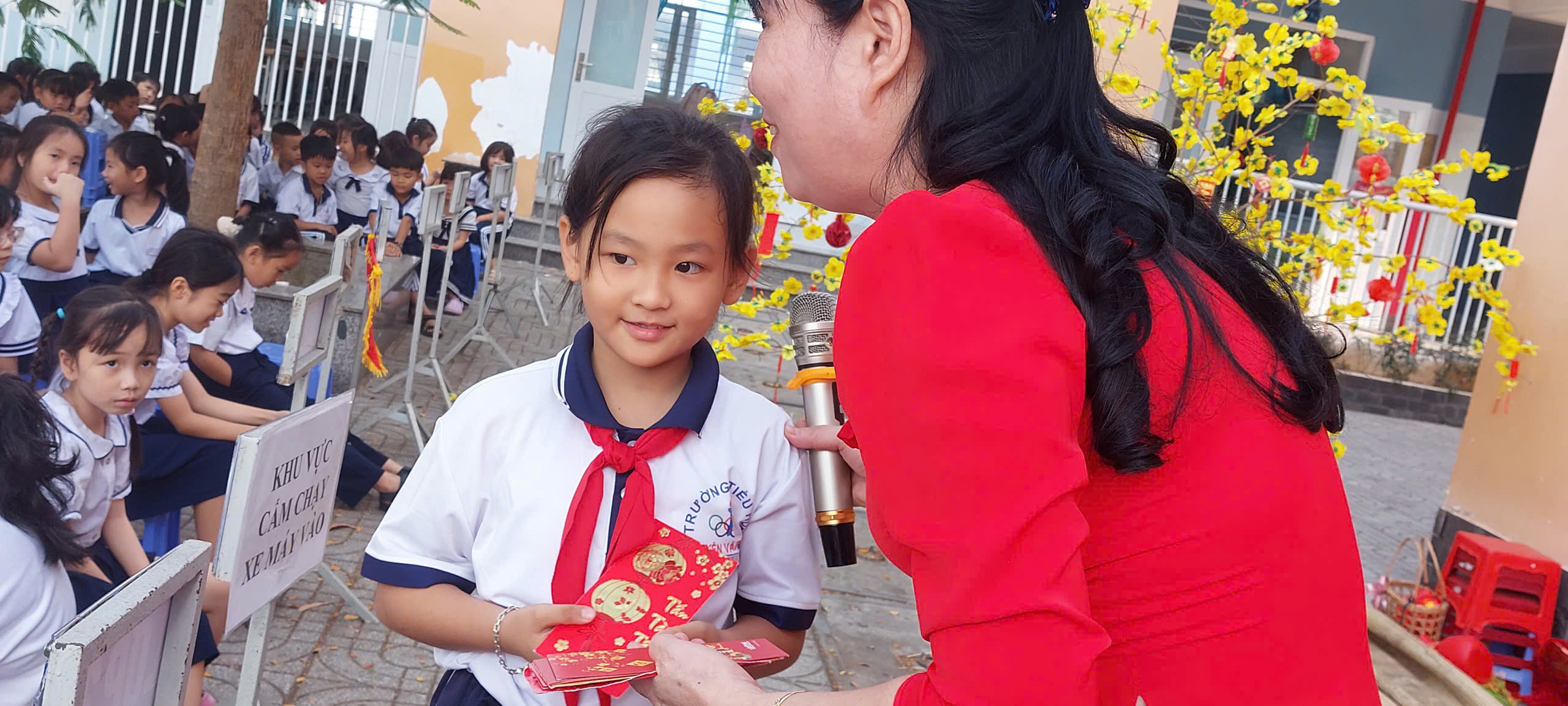Mỗi câu chuyện hay đều nhận được một phần quà lì xì may mắn từ nhà trường, gieo thêm niềm vui cho các em trong những ngày đầu năm mới.