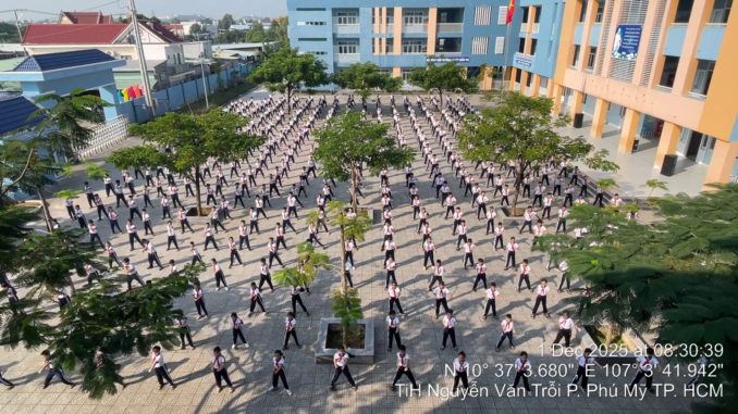 Sáng nay, 7h30 phút, ngày 01/12/2025, tại sân trường Tiểu học Nguyễn Văn Trỗi, không khí đã nóng hơn bao giờ hết với sự kiện trọng đại: Đồng diễn Võ nhạc Vovinam trong khuôn khổ chương trình hướng tới xác lập Kỷ lục kép Việt Nam và Thế giới về số lượng học sinh tham gia đồng diễn đông nhất.