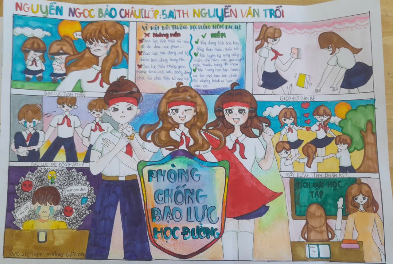 Bức tranh của Bảo Châu như một cuốn “cẩm nang” trực quan về phòng chống bạo lực.
