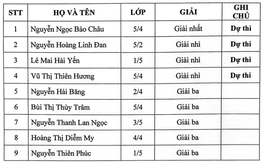 Nhà trường xin chúc mừng các em và hy vọng 4 “đại sứ nhỏ” này sẽ tiếp tục tỏa sáng, mang về những kết quả ấn tượng tại cuộc thi cấp Phường sắp tới!