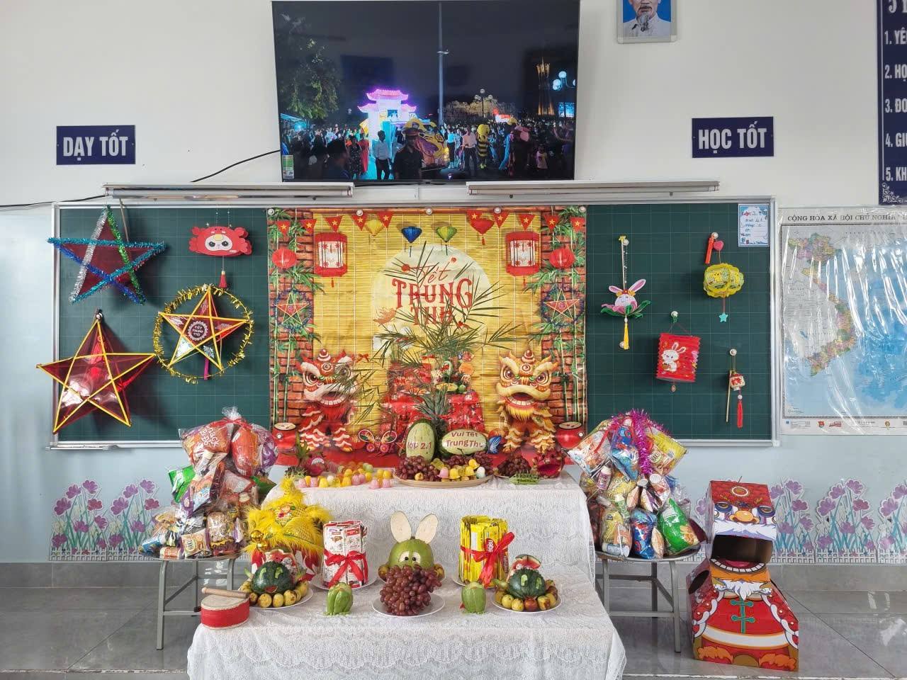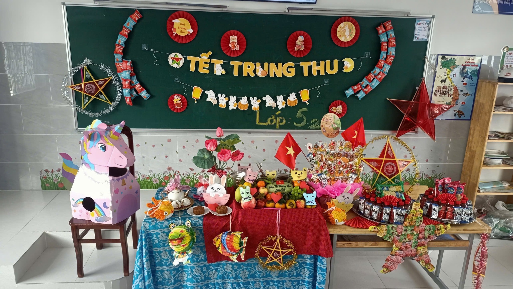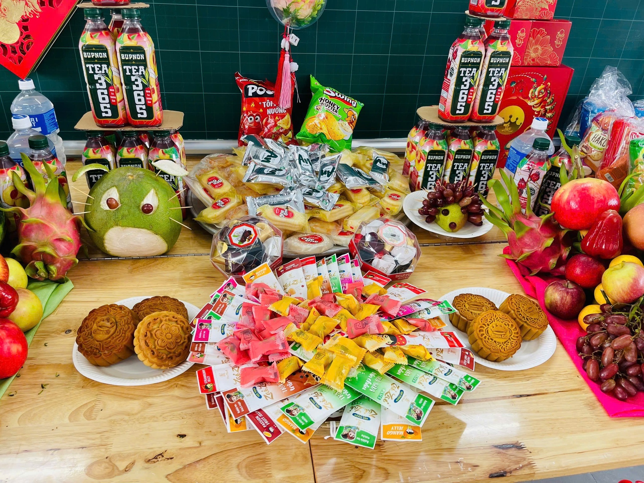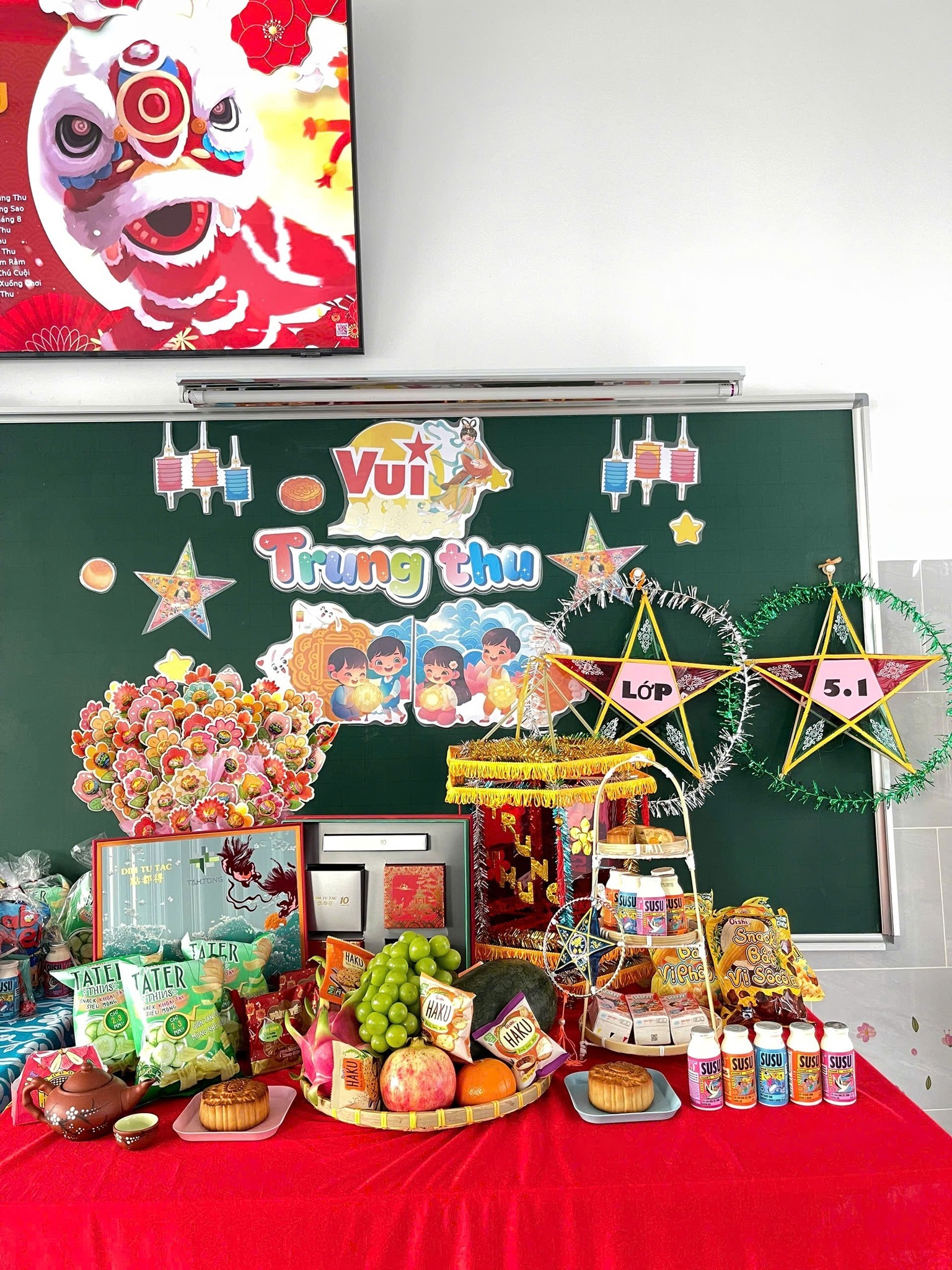 Tại các lớp học, các em đã cùng nhau bày biện Mâm cỗ Trung thu vô cùng hoành tráng! Mỗi lớp là một tác phẩm nghệ thuật với đầy ắp trái cây tươi ngon, bánh kẹo truyền thống, cùng những mô hình trang trí sinh động như: Chị Hằng duyên dáng, Chú Cuội tinh nghịch, cây đa cổ thụ và những chú thỏ trắng xinh xắn. Sự nhiệt tình, sáng tạo của các cô và các em đã biến mỗi mâm cỗ thành một bức tranh vui tươi, thể hiện rõ nét văn hóa truyền thống và tình yêu thương, đoàn kết trong từng tập thể lớp.