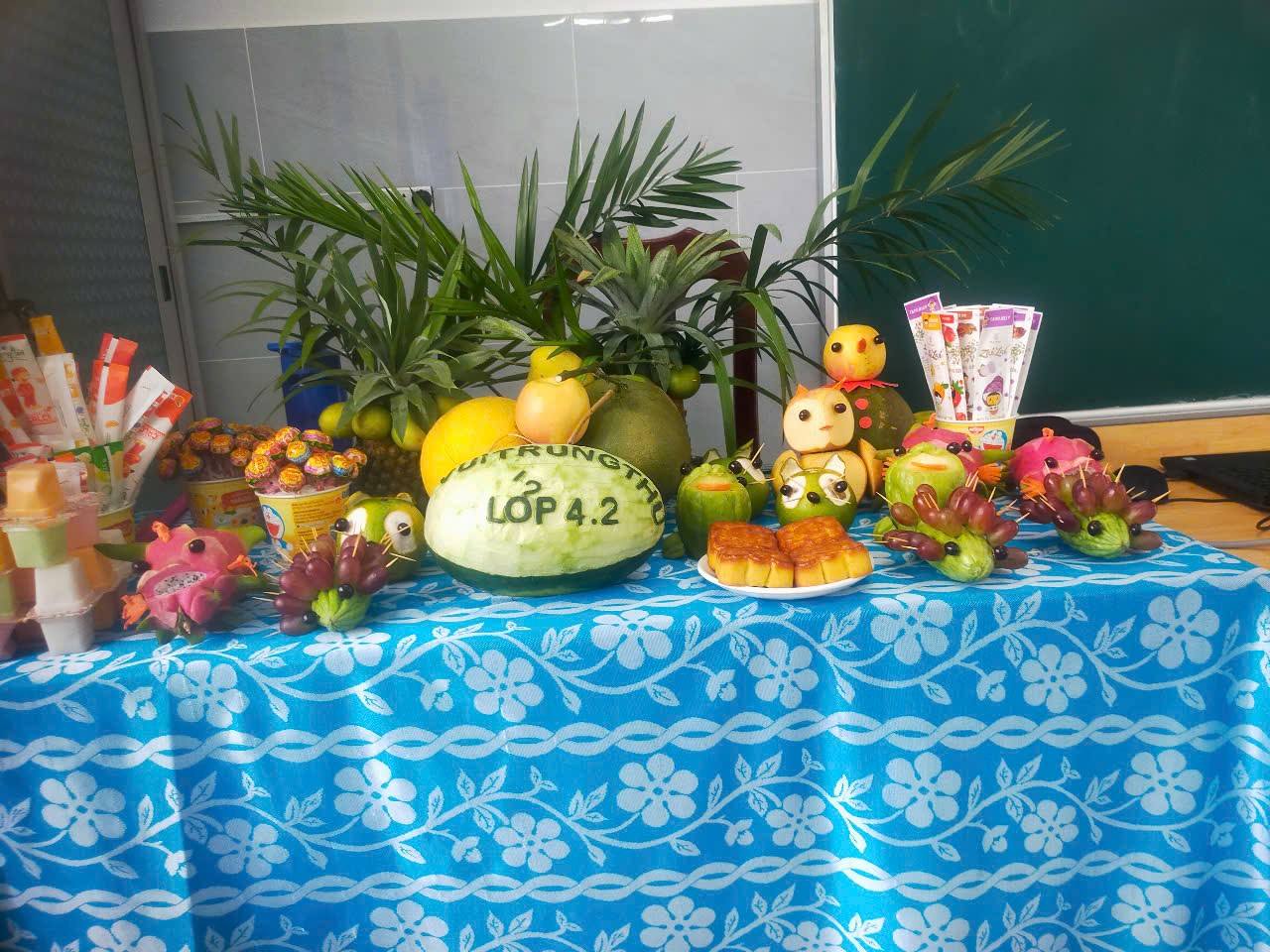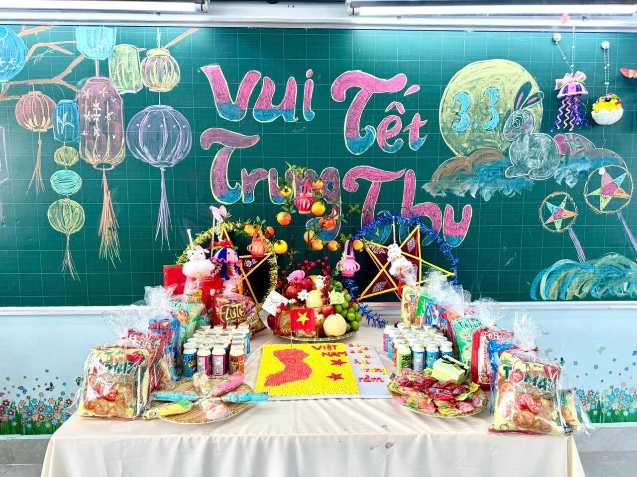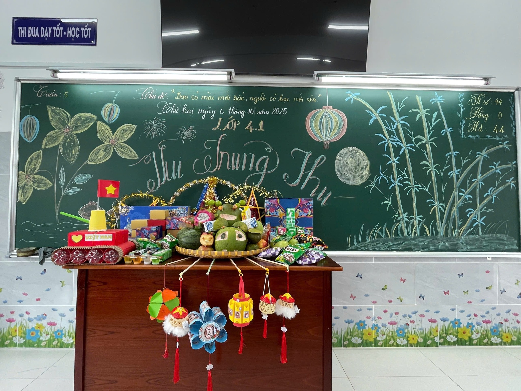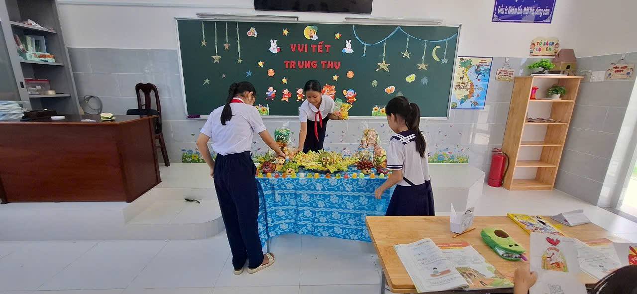 Tại các lớp học, các em đã cùng nhau bày biện Mâm cỗ Trung thu vô cùng hoành tráng! Mỗi lớp là một tác phẩm nghệ thuật với đầy ắp trái cây tươi ngon, bánh kẹo truyền thống, cùng những mô hình trang trí sinh động như: Chị Hằng duyên dáng, Chú Cuội tinh nghịch, cây đa cổ thụ và những chú thỏ trắng xinh xắn. Sự nhiệt tình, sáng tạo của các cô và các em đã biến mỗi mâm cỗ thành một bức tranh vui tươi, thể hiện rõ nét văn hóa truyền thống và tình yêu thương, đoàn kết trong từng tập thể lớp.