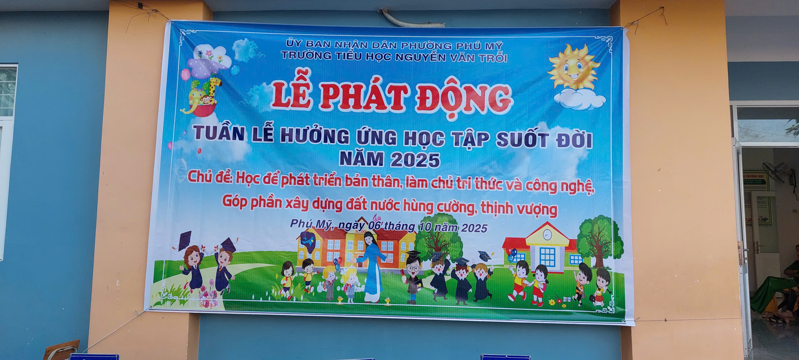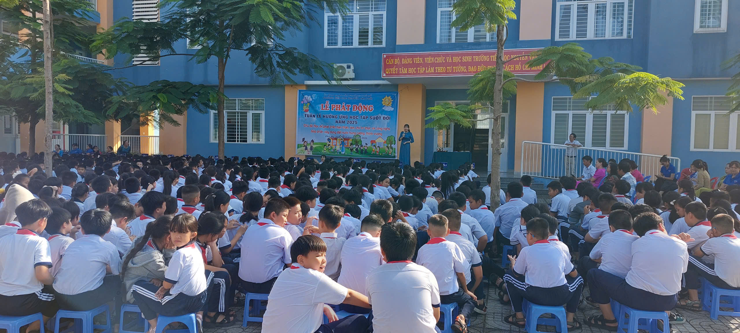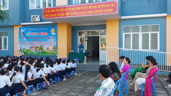 Sáng thứ Hai, ngày 06/10/2025, Trường Tiểu học Nguyễn Văn Trỗi đã long trọng tổ chức Lễ Phát động Tuần lễ hưởng ứng học tập suốt đời năm 2025 trong nghi lễ chào cờ đầu tuần. Buổi lễ do cô Hiệu trưởng Lê Thị Ánh phát động, với sự tham dự của quý vị đại biểu, quý thầy cô giáo, cùng toàn thể các em học sinh thân yêu và quý vị phụ huynh.